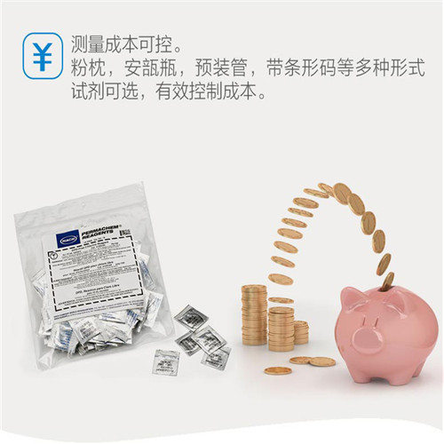 2、分别向比色皿中加入粉枕试剂货号:,反应一段时间后,即可放在分光光度计或比色计上进行测量(有些参数需加入二次粉枕或试剂货号:)